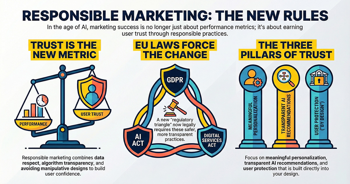 Για να καταλάβουμε το responsible marketing του 2026, πρέπει να δούμε το τρίγωνο νομοθεσίας που το ορίζει.